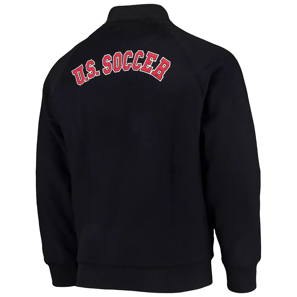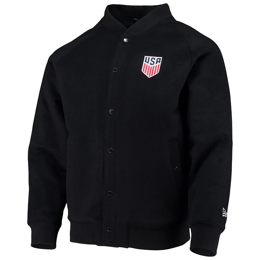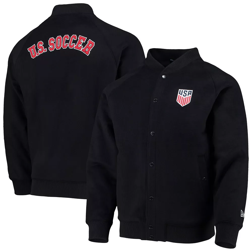 When temperatures drop, keep showing your support for US Soccer with this Club Level full-snap tri-blend bomber jacket from 5th & Ocean by New Era. It features embroidered US Soccer graphics and pockets that snap shut for a secure hold. In addition, raglan sleeves provide some extra room for layering and more flexible movement.