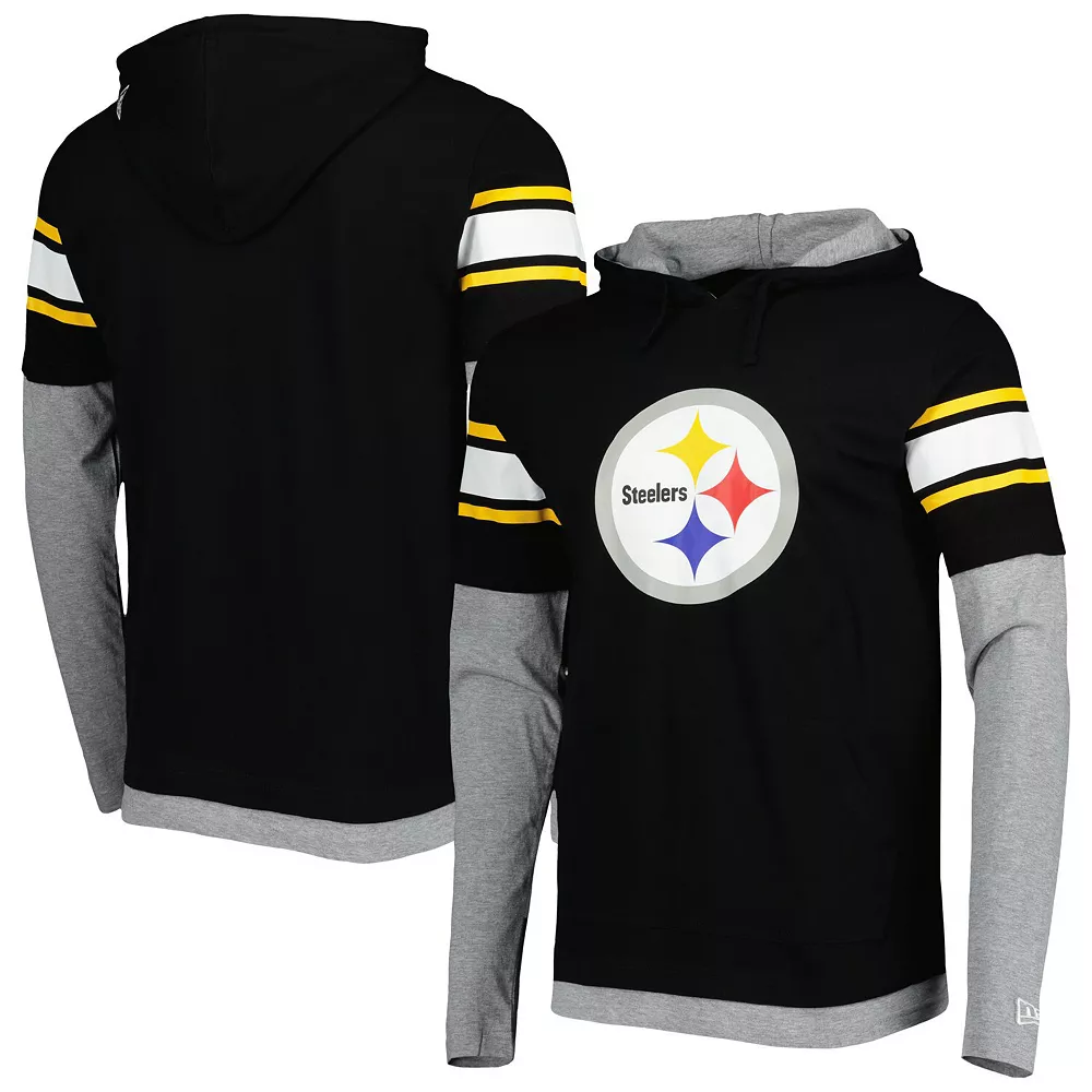 Fend off the cold in this Pittsburgh Steelers long sleeve hoodie T-shirt. It features authentic team graphics printed on soft fabric for a crisp game day look. An adjustable hood and traditional pouch pocket also deliver extra warmth when needed at the Pittsburgh Steelers stadium.