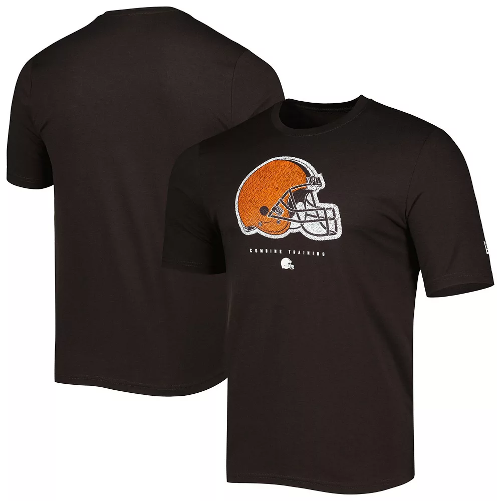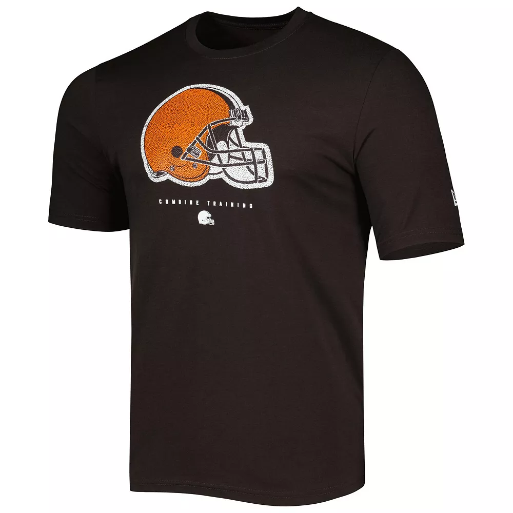 Show support for potential new Cleveland Browns players with this Combine Authentic T-shirt from New Era. It features the Cleveland Browns logo printed in a design that mimics the textured look of a football. The blended material also stretches for a more comfortable feel.