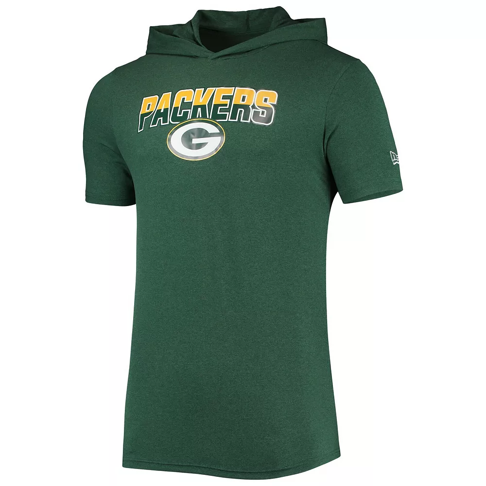 This brushed heather short sleeve hoodie from New Era lets you boast your Green Bay Packers fandom with a unique look. The polyester/spandex fabric combination has a soft touch and is ideal for a workout due to its stretchiness and durability. Nobody will doubt where your loyalty lies thanks to the bold Green Bay Packers logo and colorway.