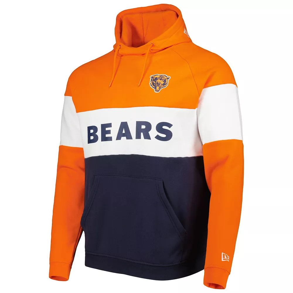 Let everyone know you’re a timeless Chicago Bears fan with this striking New Era pullover hoodie. Along with toasty fleece lining, this top offers an adjustable hood and pouch pocket for additional coverage. Additionally, it features throwback-inspired Chicago Bears graphics to add a touch of vintage flair to your collection.