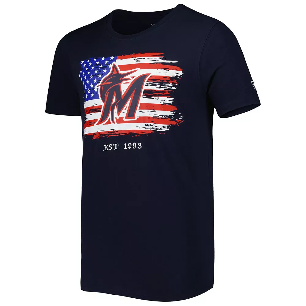 Add the flair of the stars and stripes to your wardrobe with this Miami Marlins 4th of July Jersey T-shirt from New Era. The distressed printed graphics give this tee an eye-catching vintage look. This spirited piece is a great summer option for showing your fandom.