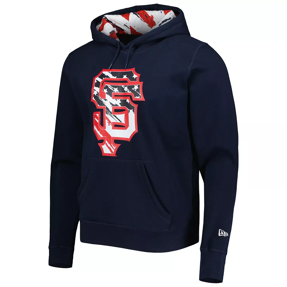 Add a patriotic piece of San Francisco Giants gear to your rotation with this 4th of July Stars & Stripes pullover hoodie from New Era. The fabric hood lining features a festive design that is sure to show your allegiance to the red, white and blue, while the San Francisco Giants graphics displayed on the front make a statement about your unwavering fandom. Inside this midweight top is a soft fleece lining that helps keep you warm and snug while you cheer on your beloved squad.