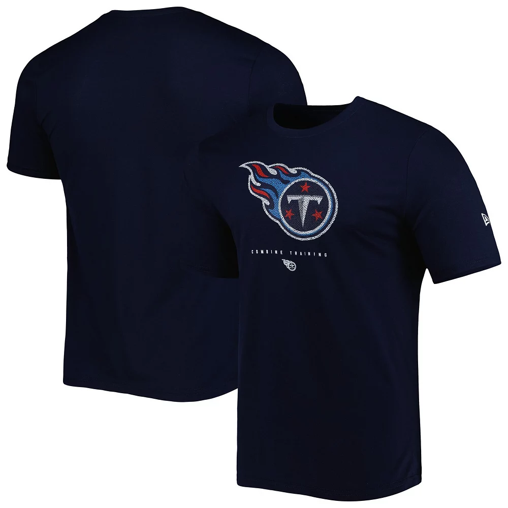 Show support for potential new Tennessee Titans players with this Combine Authentic T-shirt from New Era. It features the Tennessee Titans logo printed in a design that mimics the textured look of a football. The blended material also stretches for a more comfortable feel.