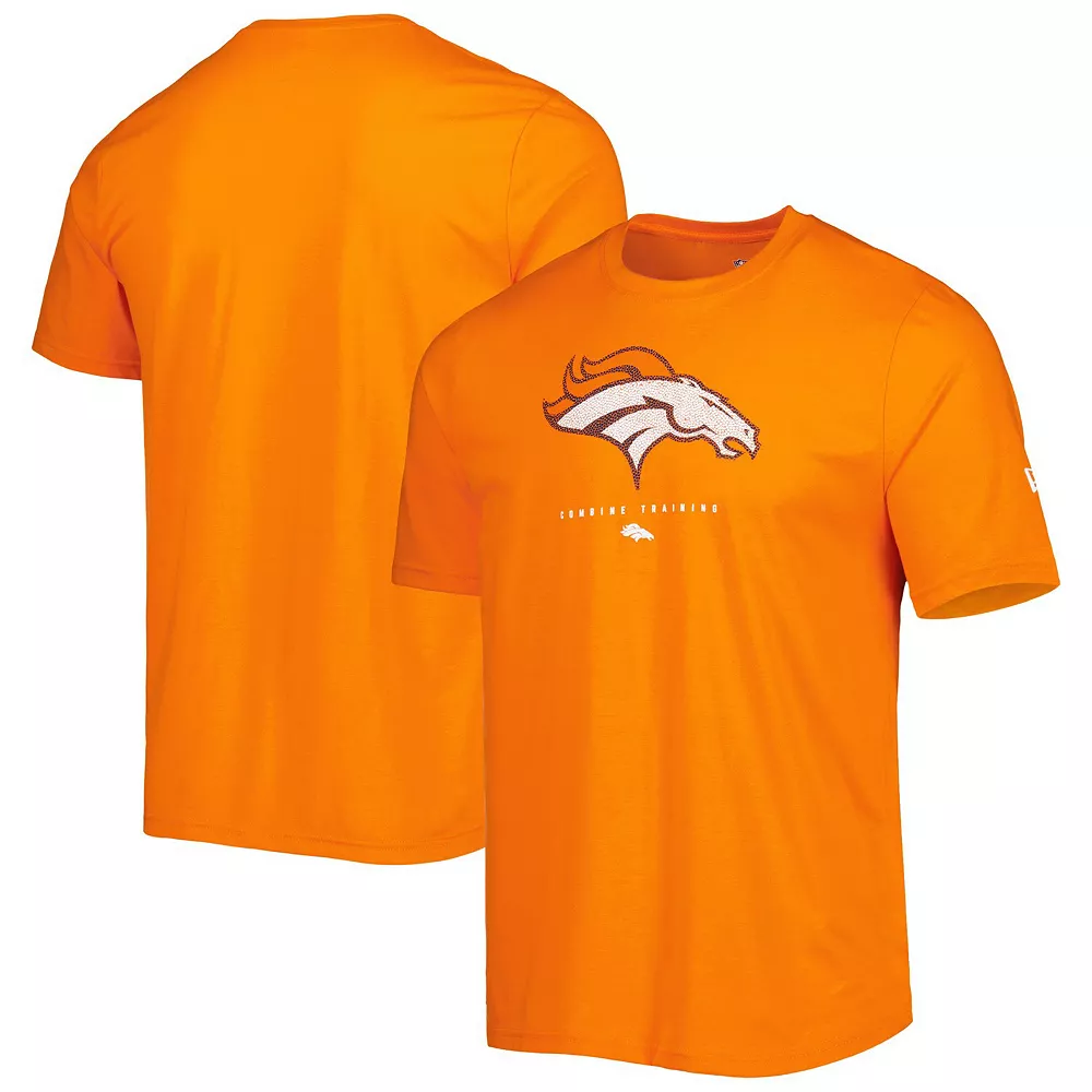 Show support for potential new Denver Broncos players with this Combine Authentic T-shirt from New Era. It features the Denver Broncos logo printed in a design that mimics the textured look of a football. The blended material also stretches for a more comfortable feel.