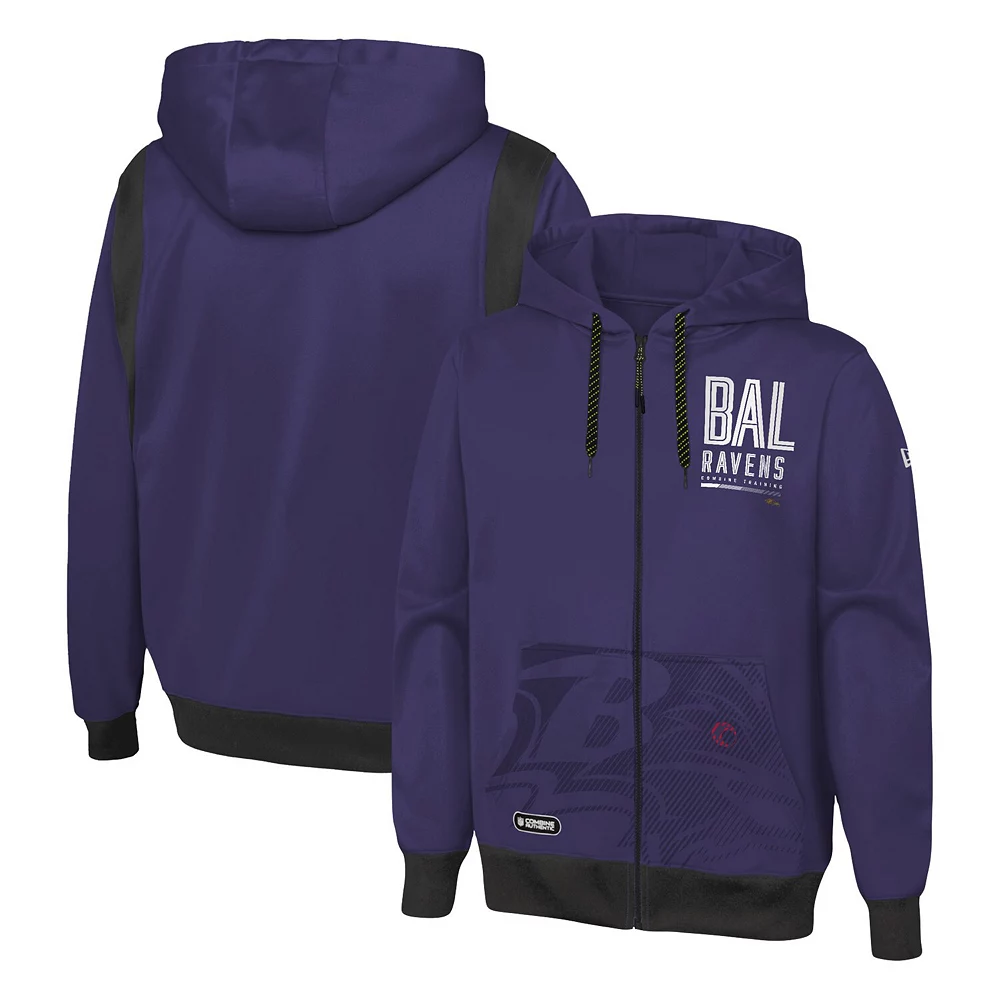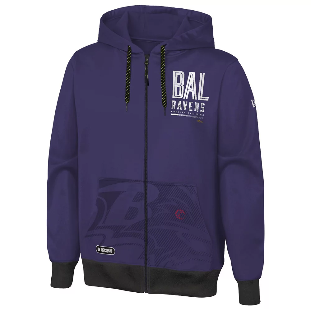 Show everyone that you look forward to seeing the next class of potential Baltimore Ravens stars every year by wearing this Combine Authentic Drop Back hoodie from New Era. It features printed Baltimore Ravens graphics accentuated by the contrasting trim in a team color. Plus, the full-zip closure gives you more control over personal temperature.