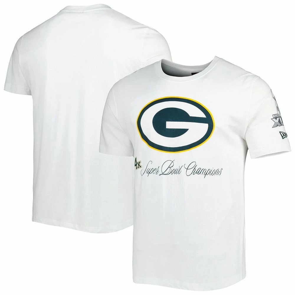 Add some fresh Green Bay Packers gear to your wardrobe with this Historic Champs T-shirt from New Era. It features team graphics to emphasize the postseason success of your Green Bay Packers. Plus, the foil accent adds style points to this comfy cotton tee.
